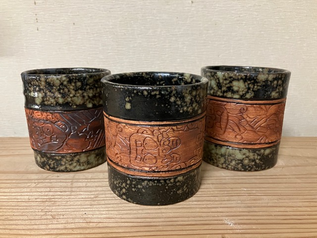J-5 コップ モスグリーン陶板土塗
