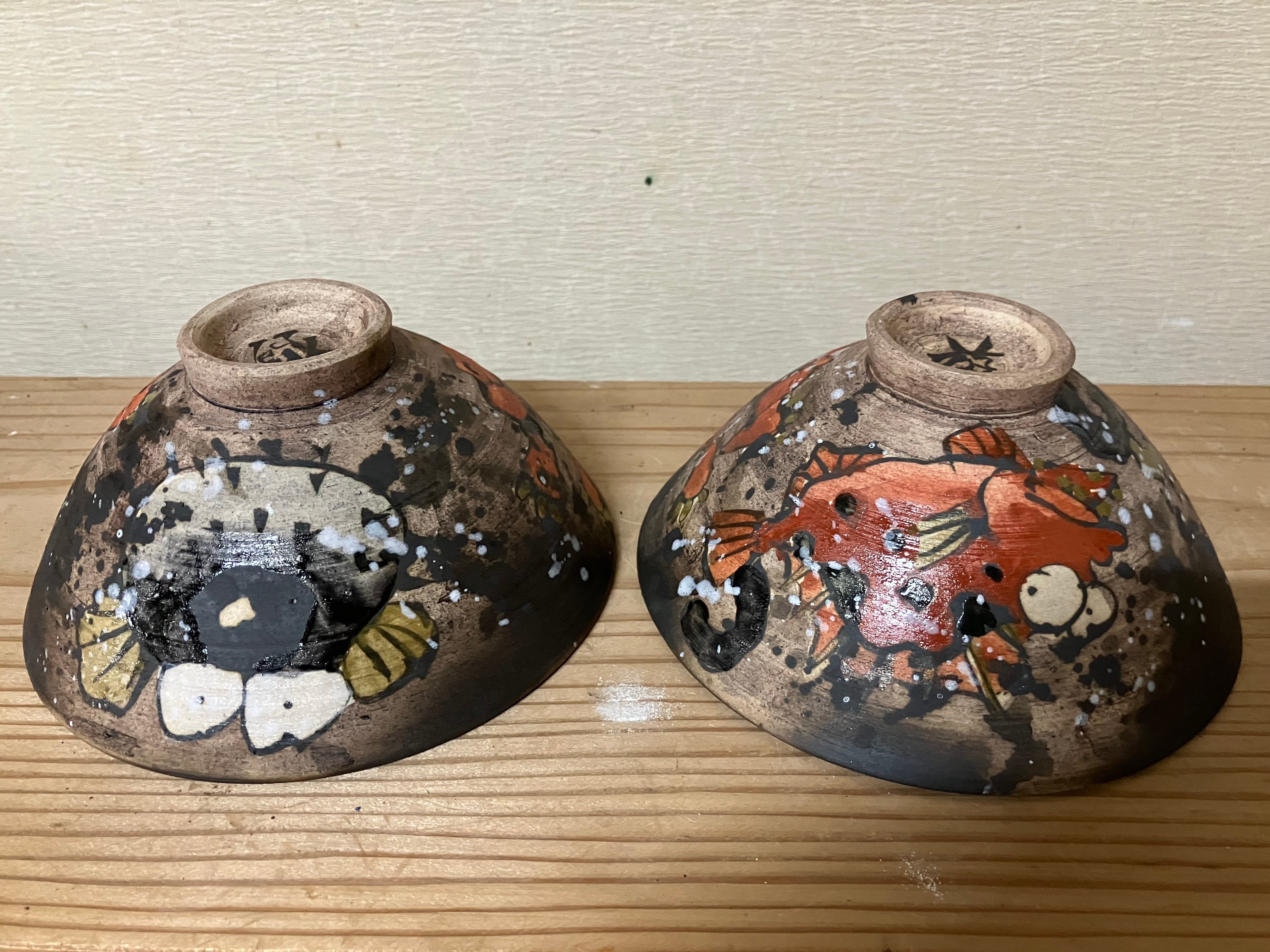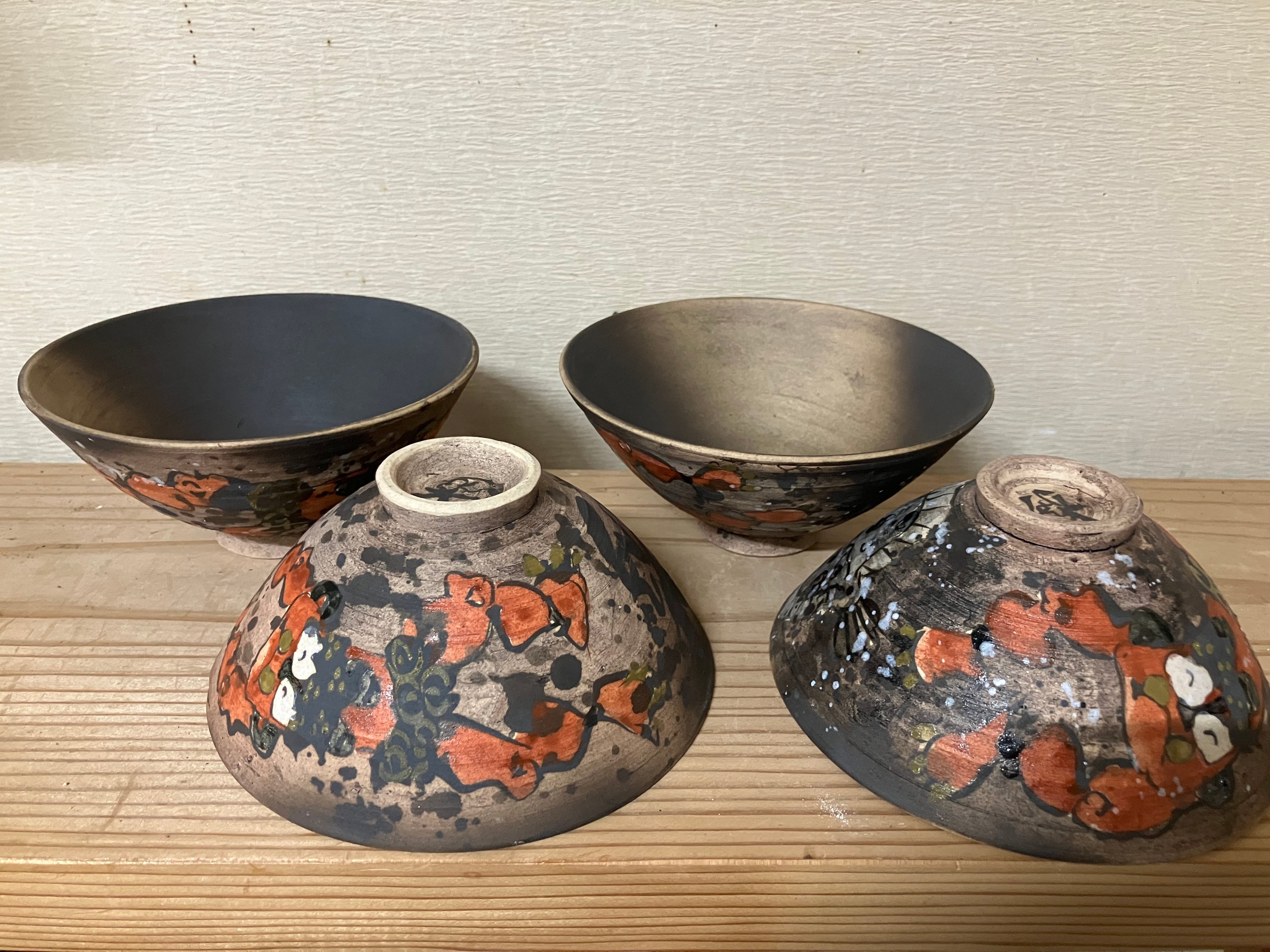 口径が大きいご飯茶碗です。土物焼〆ですので若干ざらついた手触りになっています。