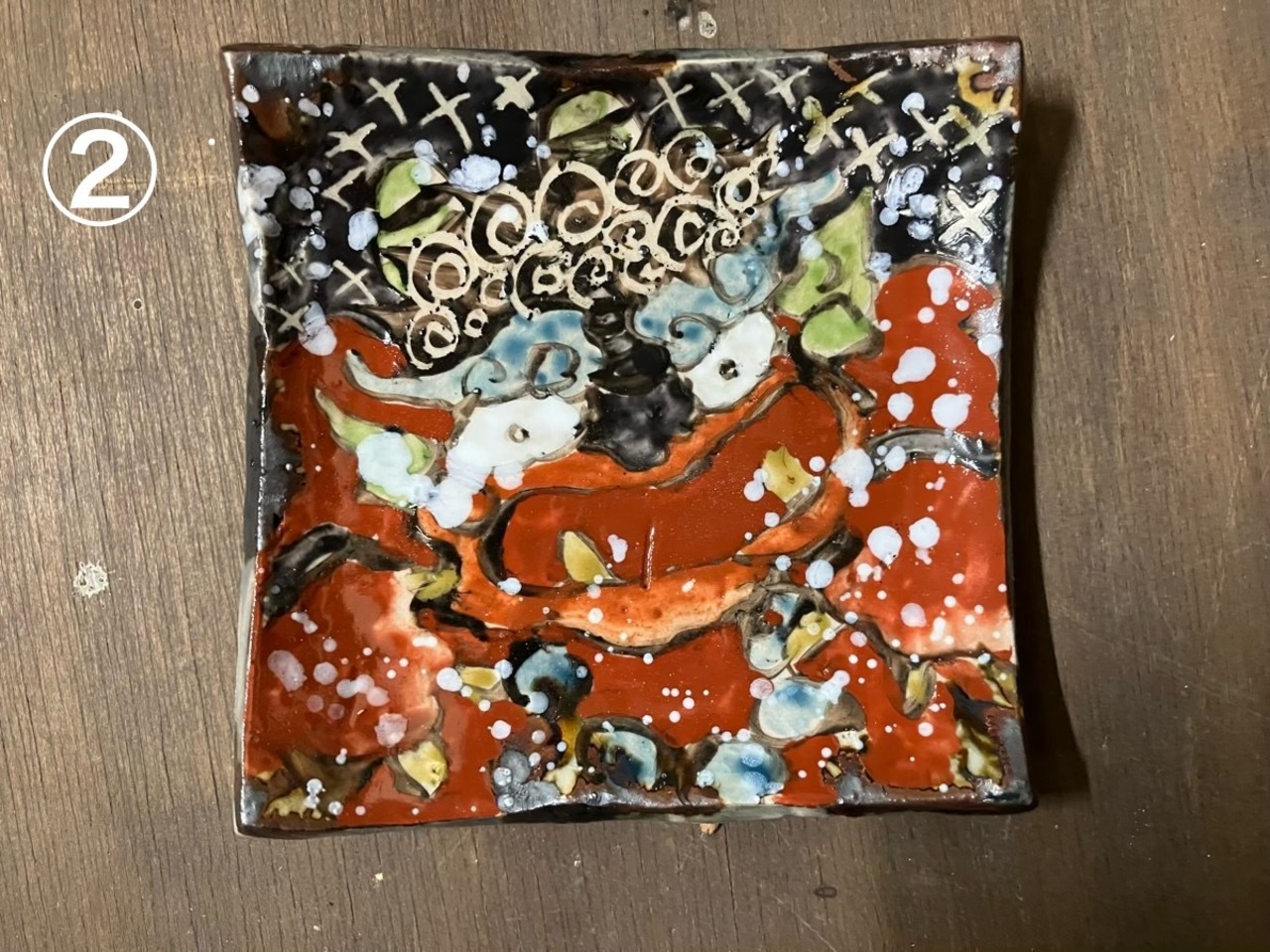 四方上がりの小皿いっぱいに描かれた鬼の顔。
